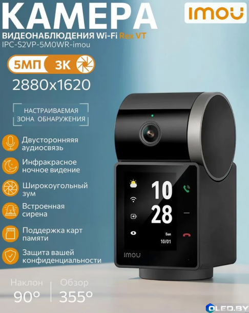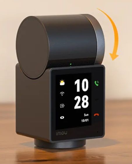 Imou Rex VT — это поворотная 5 Мп (3K) Wi-Fi камера для помещений, отличающаяся уникальным 2.4-дюймовым экраном для отображения времени, даты и погоды.
