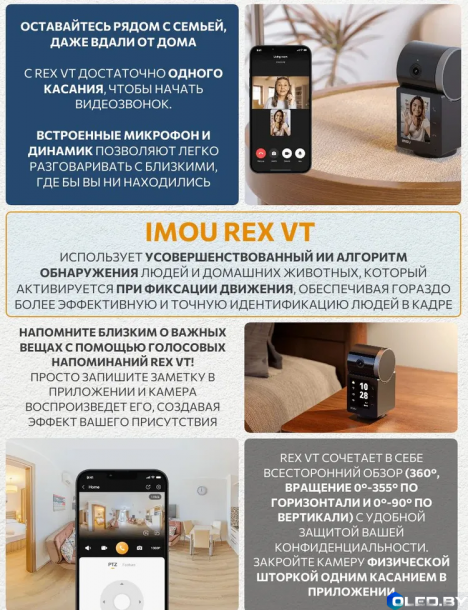 Поворотный механизм: Imou Rex VT обладает широким диапазоном вращения и наклона, позволяющим камере охватывать большую область и автоматически отслеживать движение подозрительных объектов. Это обеспечивает улучшенную безопасность и контроль за окружающей обстановкой.