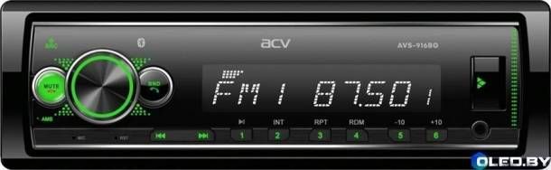 Автомобильная магнитола 1din ACV AVS-916BG с современным модулем Bluetooth, поддержкой приложений ACV RC для Android и ACV Control для iOS. Оснащена встроенным усилителем с максимальной мощностью 4х50 Вт, RCA стерео аудио выходами, читает MP3/WMA с USB и SD носителей. Для того чтобы приобрести качественную магнитолу по привлекательной цене, вам нужна эта модель. Безусловно, она заслуживает внимания. Она исполнена в классическом дизайне, имеет зеленую подсветку кнопок и воспроизводит все популярные форматы файлов.