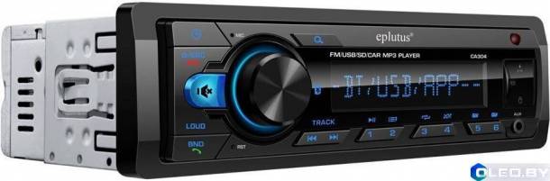 Автомагнитола оборудована ярким жидкокристаллическим дисплеем, антенным входом, портами USB а также AUX, что дает возможность использовать ее для гарантированно высококачественного прослушивания радипередач FM диапазона, а кроме того воспроизведения аудиофайлов с флеш-карт, телефонов а также иных компьютеризированных внешних гаджетов. С целью сопряжения с посторонними приборами Eplutus CA304 использует беспроводную взаимосвязь Bluetooth версии 5.0.