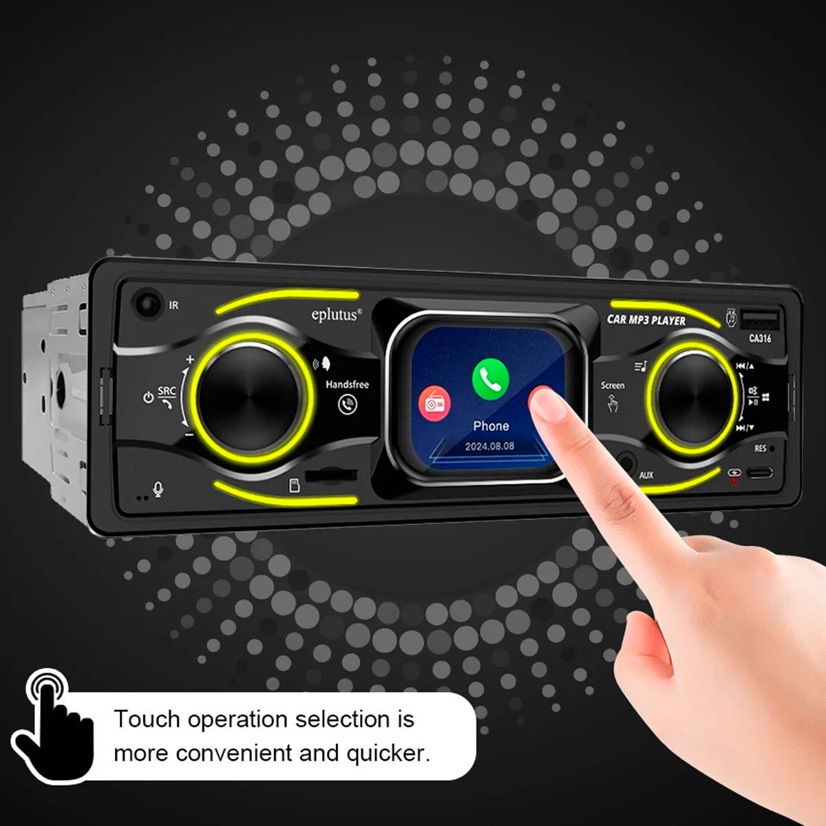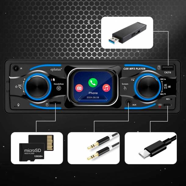 Автомагнитола Eplutus CA316 (12V) — это бюджетное 1 DIN мультимедийное устройство с сенсорным LCD-экраном.