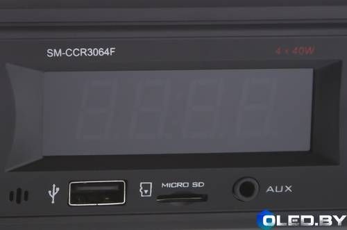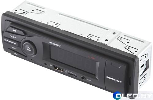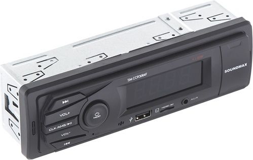 Антенный вход радиоприемника и разъем подключения по ISO SOUNDMAX SM-CCR3064F расположены на задней панели корпуса. В магнитоле предусмотрено 4 аудиовыхода для присоединения акустики, каждый из которых демонстрирует выходную мощность 40 Вт. В комплект с аудиоустройством включен ISO-коннектор. Поддерживает типоразмер 1 din. Модель лишена дискового привода, однако оснащена разъемами USB и AUX на передней панели. Благодаря этому становится возможным подключение накопителей с уже созданным плейлистом и MP3-плееров. Медиаплеер читает форматы MP3 и WMA.