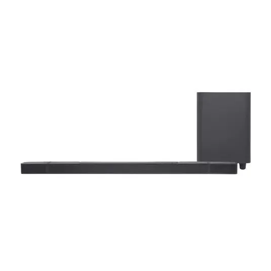 Саундбар JBL Bar 1000 Pro Black — это флагманская 7.1.4-канальная система мощностью 880 Вт с беспроводным 10-дюймовым сабвуфером и съемными тыловыми колонками на аккумуляторах.