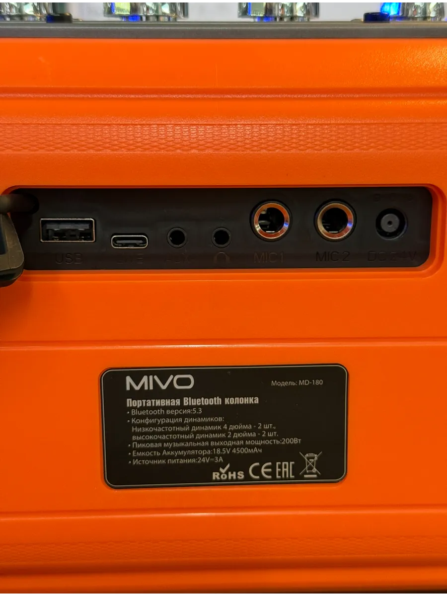Mivo MD-180 — это отличный выбор для тех, кто хочет быть в центре событий, ценит мощный звук, яркие эмоции и свободу движения. Незаменимый аксессуар для отдыха, праздников и активной жизни.
