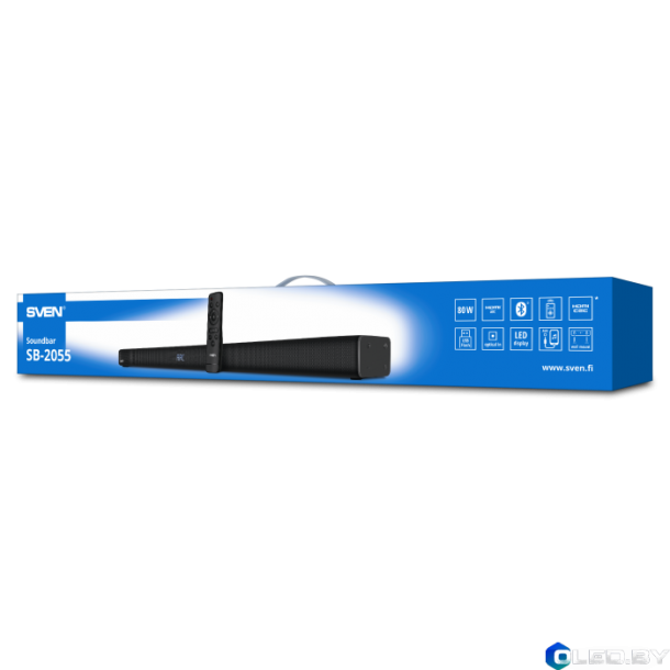 Саундбар для телевизора. Саундбар SVEN SB-2055 прекрасно поместится на полке под телевизором, также его повесить на стену — конструкцией предусмотрены специальные крепления.Внешний вид SB-2055 максимально лаконичен — он легко впишется в любой интерьер.