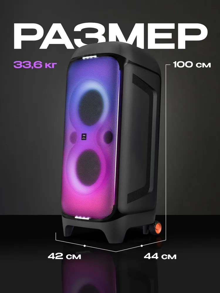 Наполни звуком и светом всё свободное пространство — даже если это outdoor. Vipe Nitro X8 Pulsar — это ураганная мощность 480 Вт и пульсирующий свет 360°: Full LED-подсветка всей передней панели, вертикальные LED полоски, фонарь в пол и восемь синхронизированных неоновых стробоскопов. Легендарный буст баса Nitro Bass, предустановленный эквалайзер и независимая настройка частот, а также возможность объединения двух колонок Vipe Nitro X8 Pulsar в одну мощную стереосистему True Wireless Stereo стирают границы невозможного. И не забудь скачать мобильное приложение My Vipe, чтобы получить доступ к настройкам и дистанционному управлению.