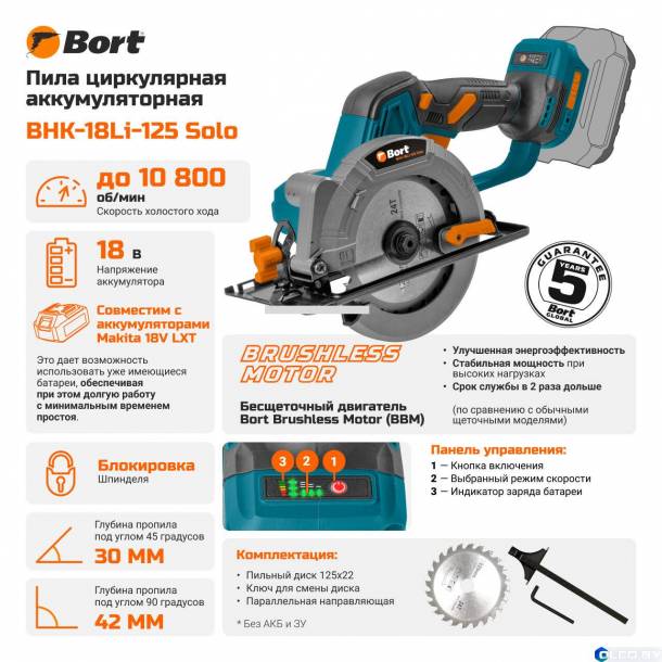 Отзывы на дисковая пила bort bhk-18li-125