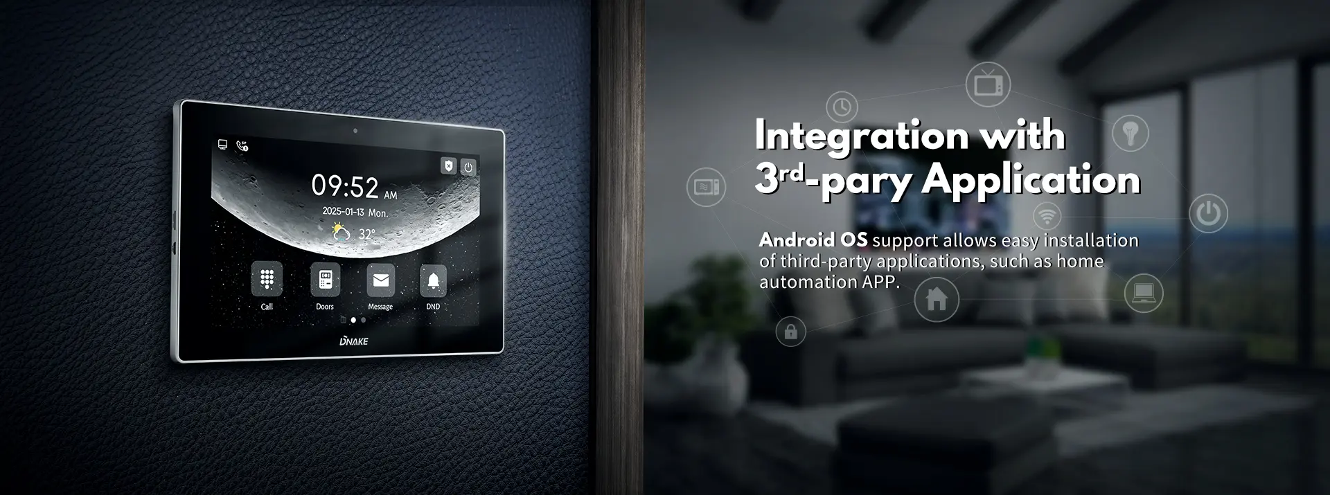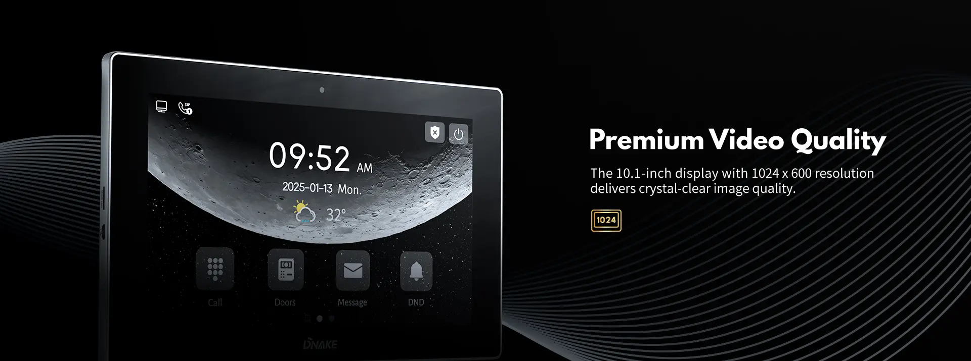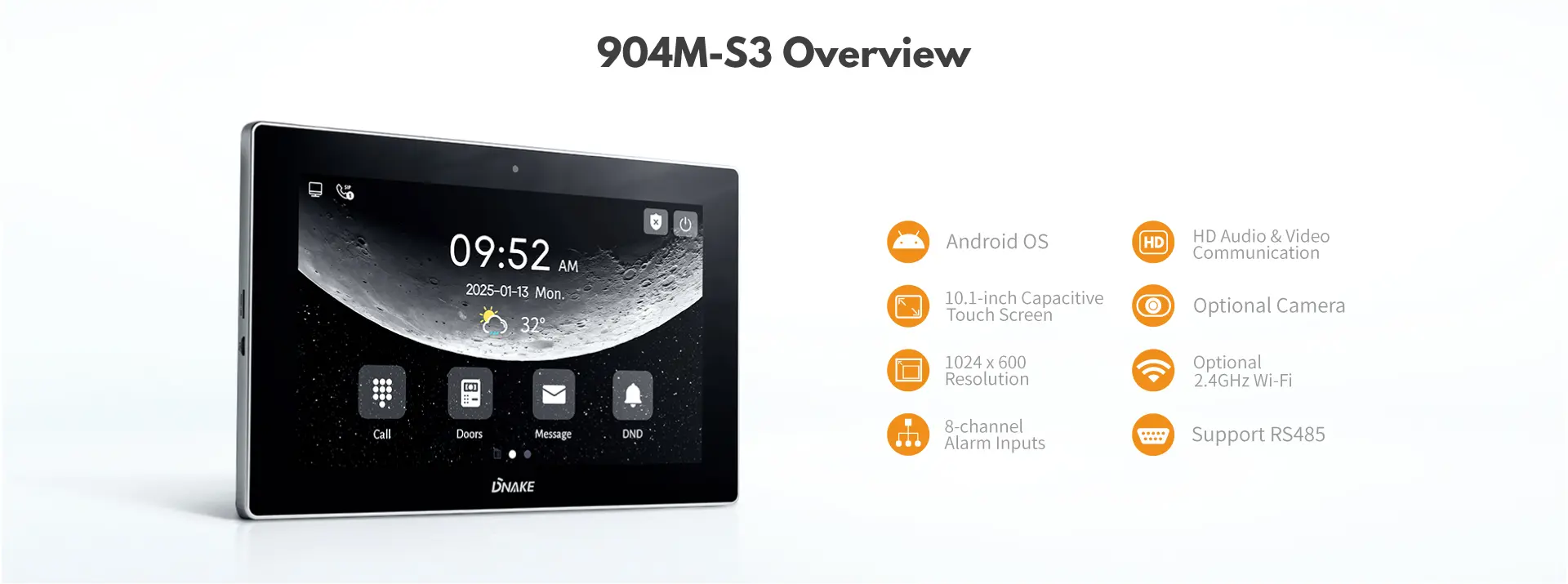 Видеодомофон Dnake 904M-S3-W (версия с Wi-Fi) — это 10.1-дюймовый IP-монитор на Android 6.0 с сенсорным TFT-экраном (1024x600), предназначенный для систем видеодомофонии.