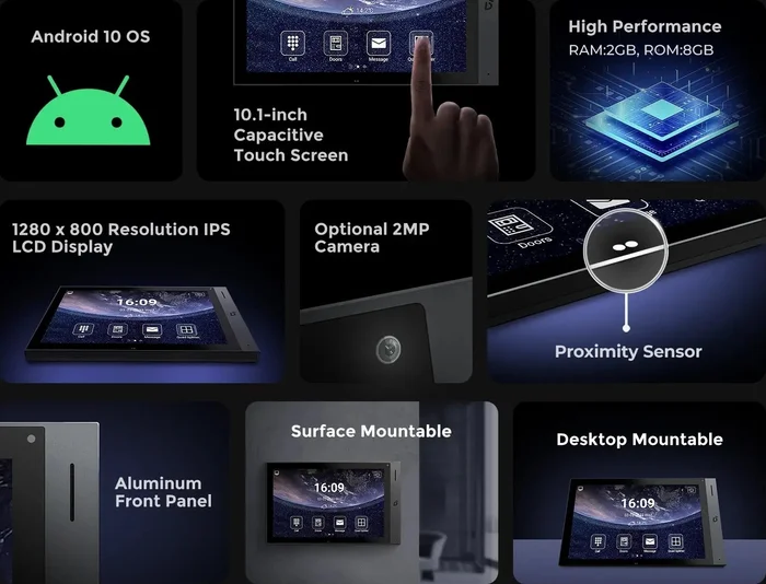 Dnake H618A работает на операционной системе Android 10 и обеспечивает высококачественную аудио- и видеосвязь с вызывной панелью и между комнатами через протокол SIP 2.0.