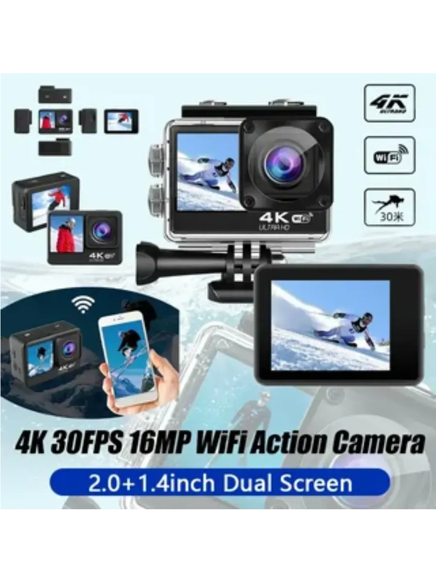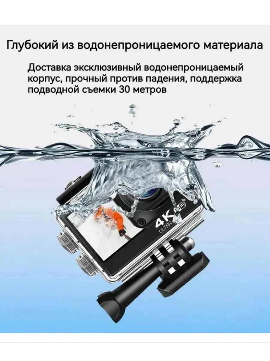 Экшн-камера Eplutus DV-14 — это многофункциональное устройство, поддерживающее съемку в формате 4K (30/60 кадров/сек) с широкоугольным объективом (140°–170°).