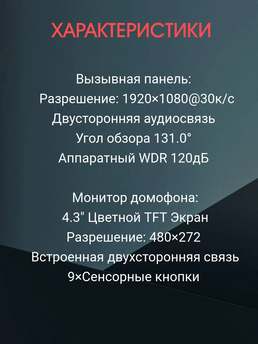 Память: Не имеет встроенной памяти в панели, запись возможна при использовании карты памяти в мониторе (зависит от модели монитора в комплекте).