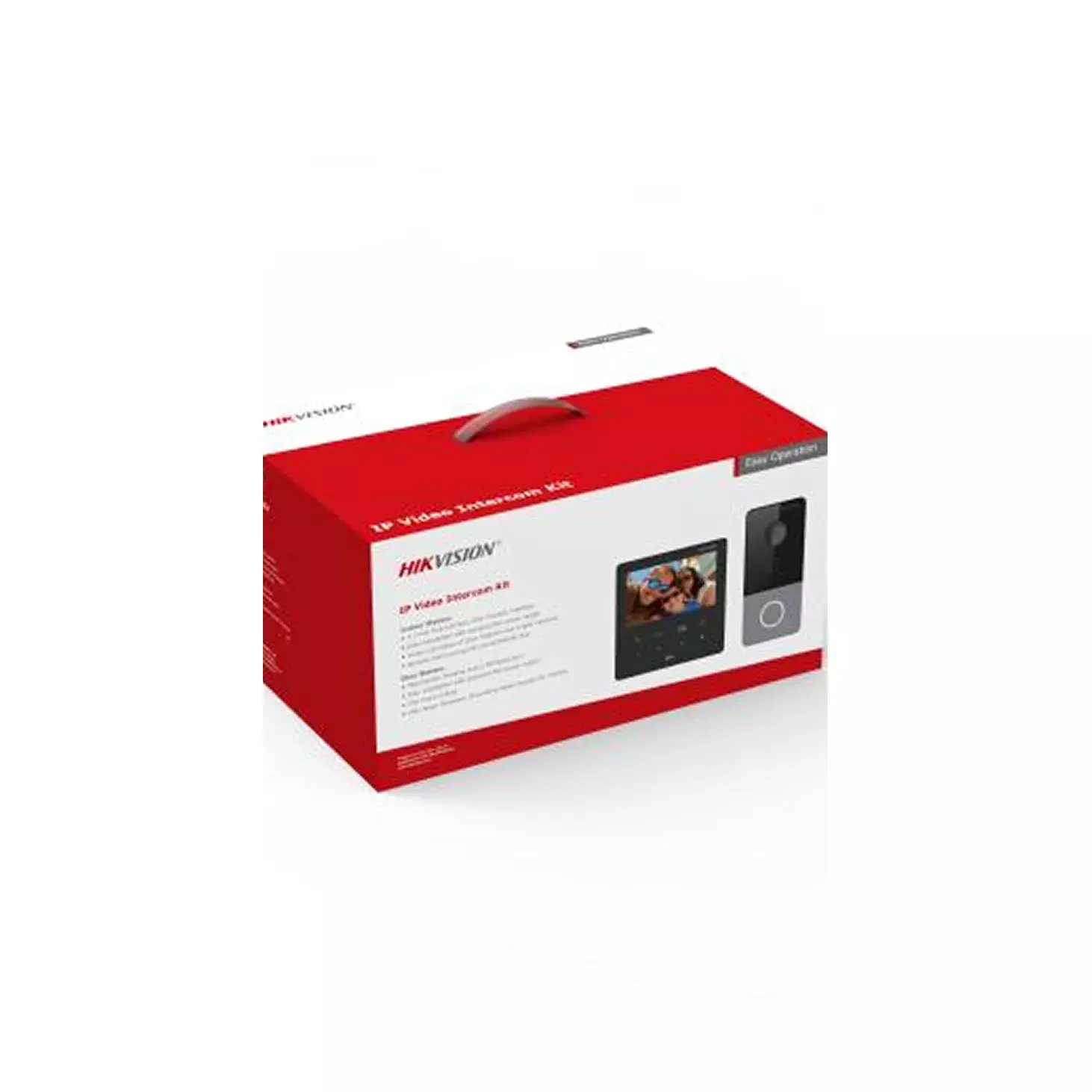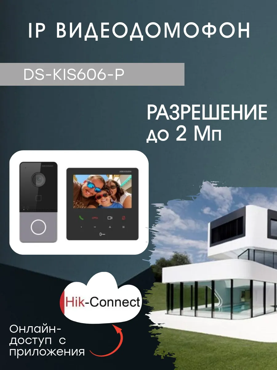 Hikvision DS-KIS606-P — это комплект IP-видеодомофона начального уровня, включающий 2 Мп вызывную панель DS-KV6113-PE1 и монитор DS-KH6110-WE1.
