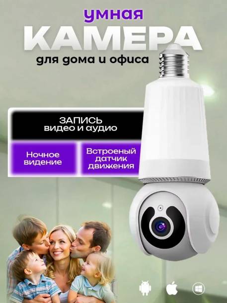 Владельцам жилья, которым нужна простота: Идеальна для тех, кто не хочет сверлить стены и прокладывать кабели, так как камера устанавливается в стандартный патрон E27.