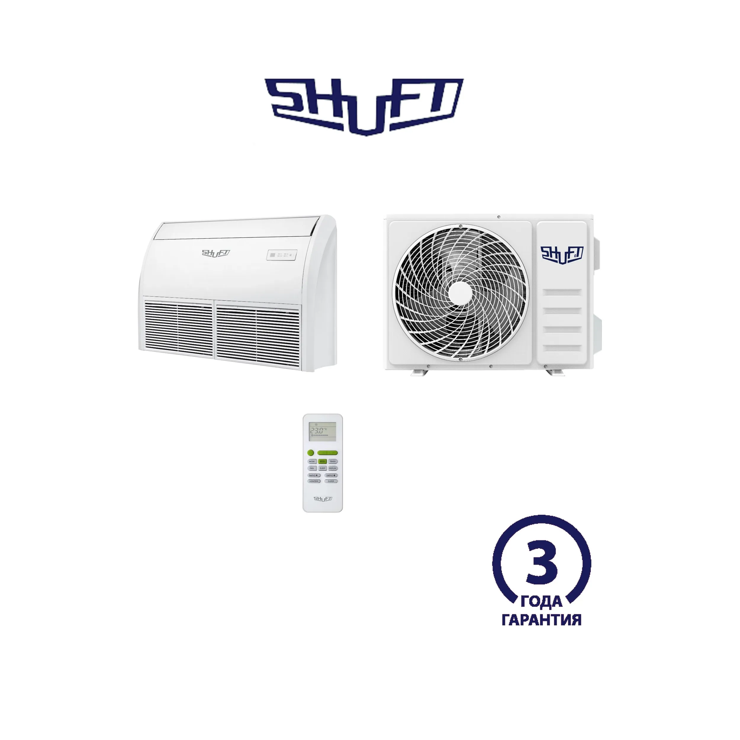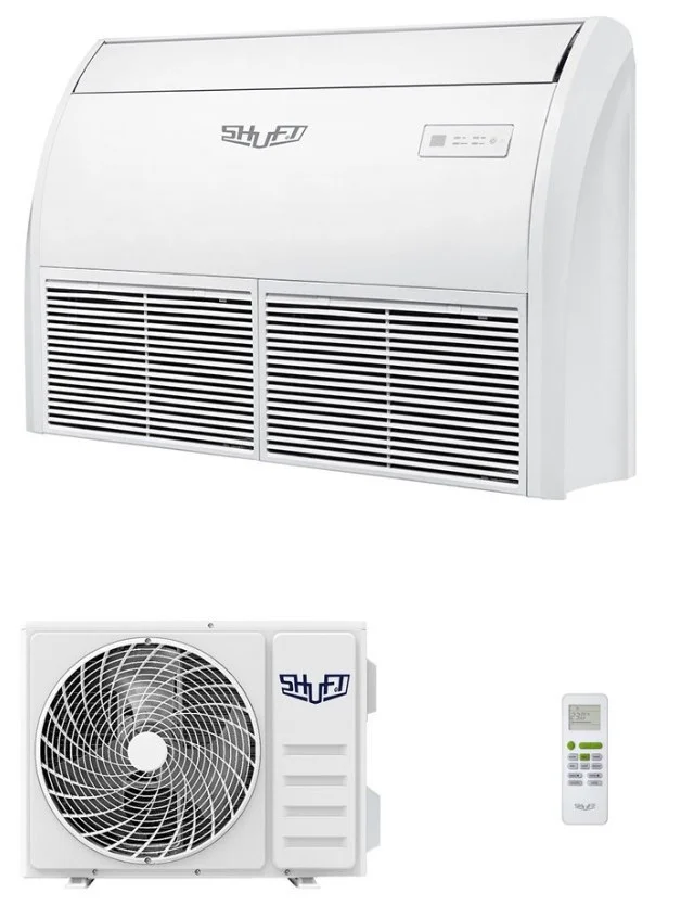 Кондиционер Shuft SFLC_CF-24HN1 — это полупромышленная напольно-потолочная сплит-система мощностью 24000 BTU (около 7 кВт), предназначенная для помещений площадью до 70 кв.м.