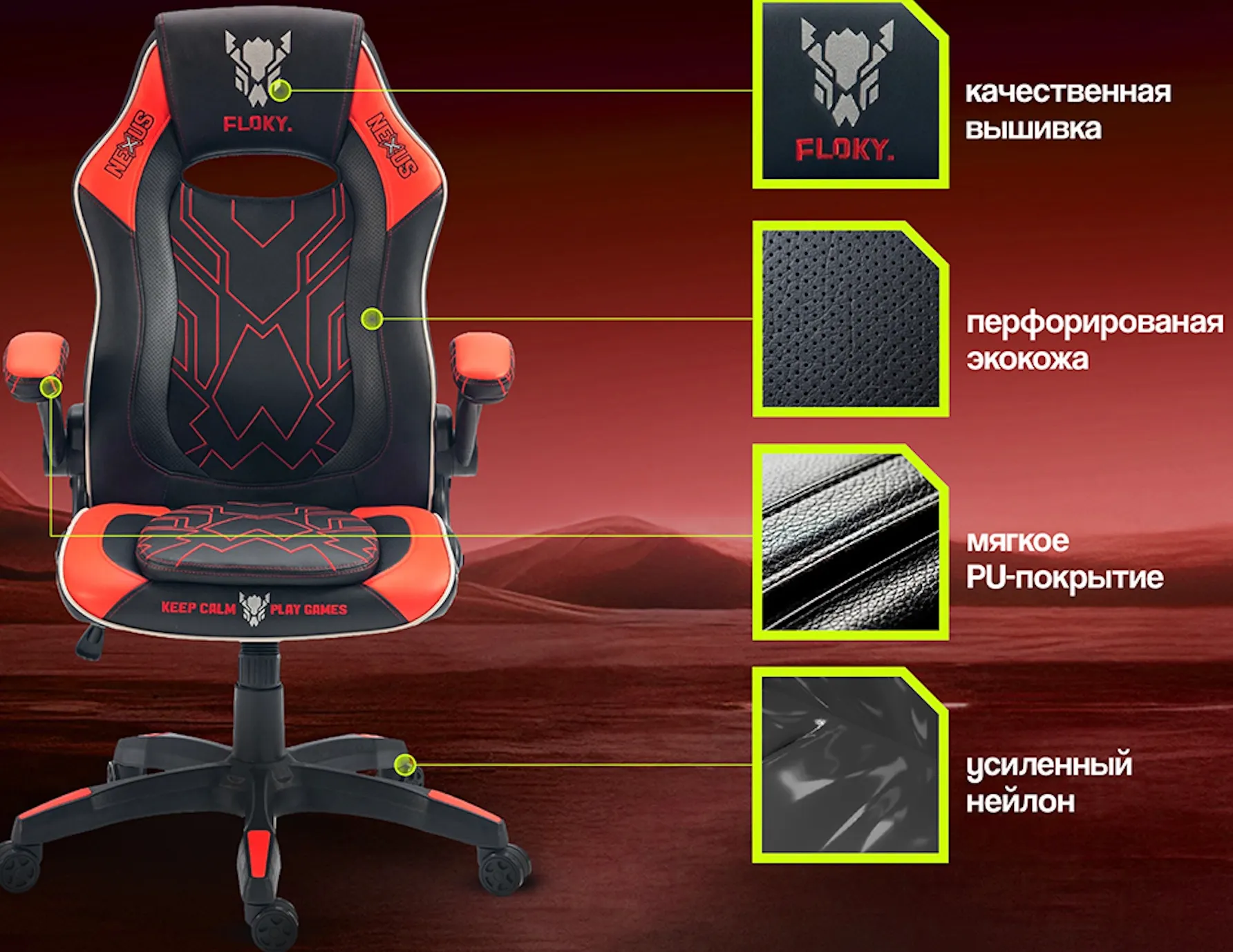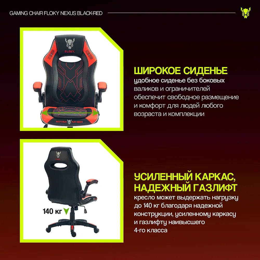 Характеристики на кресло геймерcкое floky nexus (черный красный)