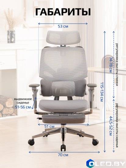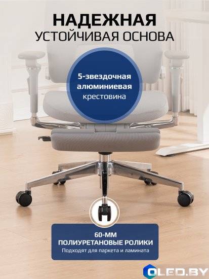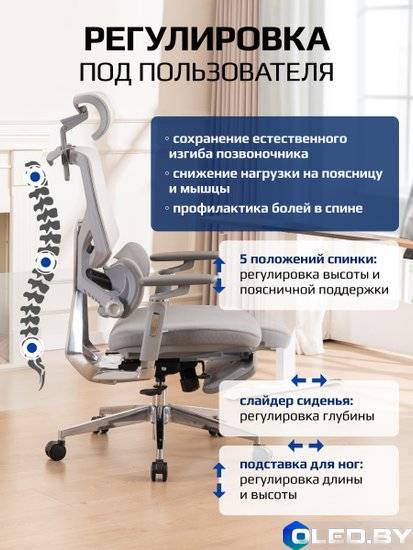 Синхромеханизм с 4-ступенчатой блокировкой угла наклона автоматически подстраивается под движения тела, обеспечивая оптимальную поддержку спины. Система регулировки глубины сиденья и 5 уровней настройки высоты спинки позволяют идеально адаптировать кресло под индивидуальные параметры пользователя. Особенность модели — инновационные 5D-подлокотники с расширенными возможностями настройки и встроенная подставка для ног, которая превращает рабочее место в зону отдыха.