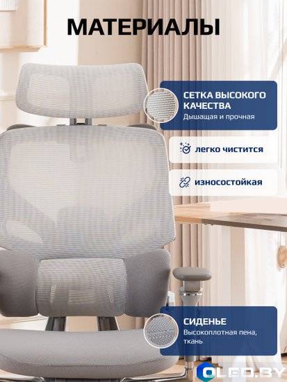 Материалы и конструкция: Надежная алюминиевая крестовина, спинка из дышащей нейлоновой сетки, сиденье из износостойкой ткани с пеной высокой плотности.