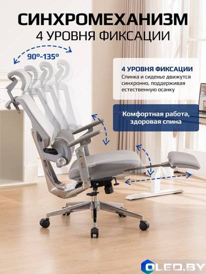 Синхромеханизм: Наклон спинки (90°–135°) с 4-уровневой блокировкой, позволяющий откинуться для отдыха.