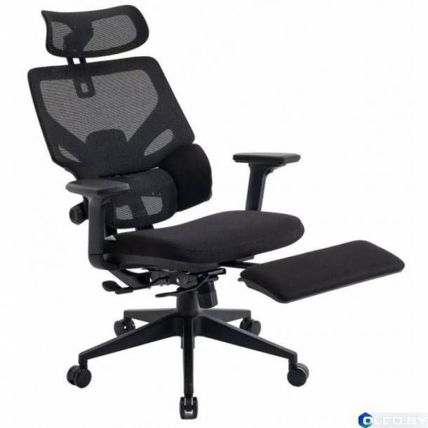 Эргономика и поддержка: Регулируемая поддержка поясницы, 4D-подголовник (регулировка высоты, угла наклона) и спинка из дышащей нейлоновой сетки для оптимального распределения нагрузки.