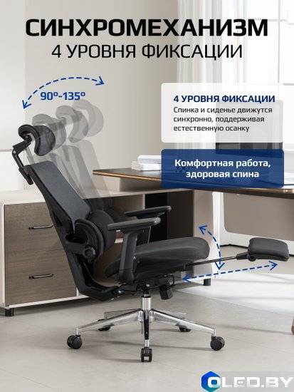 Уникальная система регулировки наклона спинки позволяет настроить кресло под ваши индивидуальные предпочтения. Вы можете выбрать угол наклона от 90° до 135°, что обеспечивает оптимальную поддержку спины в течение всего рабочего дня.