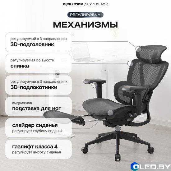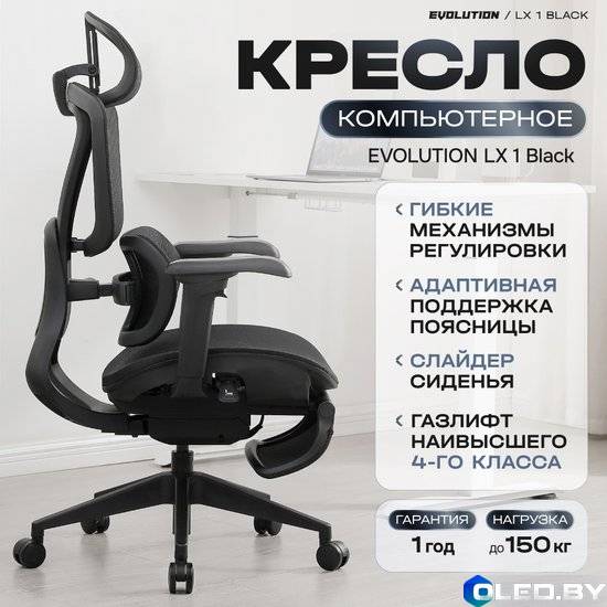 Кресло компьютерное EVOLUTION LX 1 — это эргономичная модель с дышащей сетчатой обивкой, предназначенная для работы и отдыха.