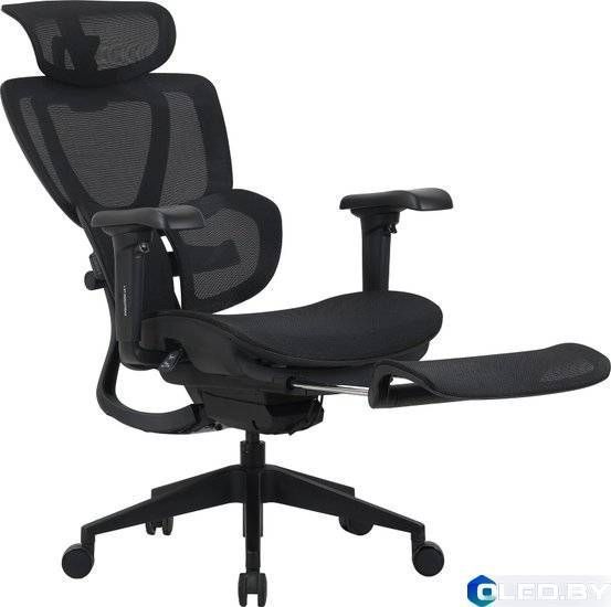 Регулировки: 3D подлокотники (регулировка по высоте, углу и вылету), регулировка подголовника, синхромеханизм наклона и подставка для ног позволяют настроить кресло под себя.