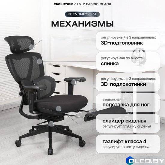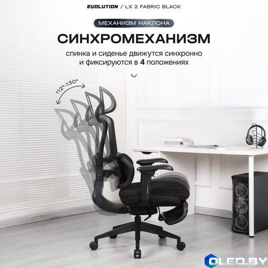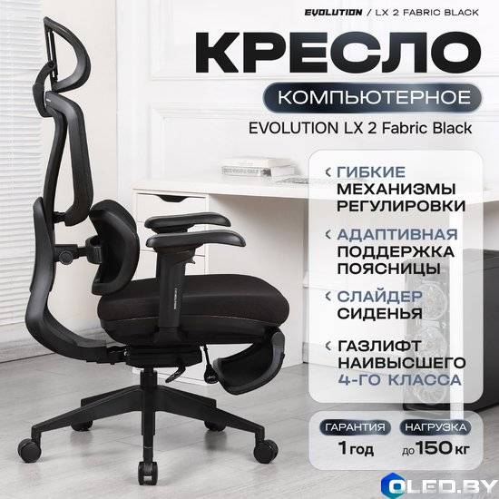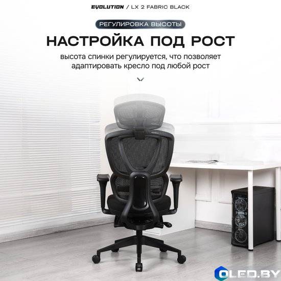 Компьютерное кресло EVOLUTION LX 2 Fabric Black — это современное эргономичное кресло с дышащей тканевой обивкой, предназначенное для длительной работы.