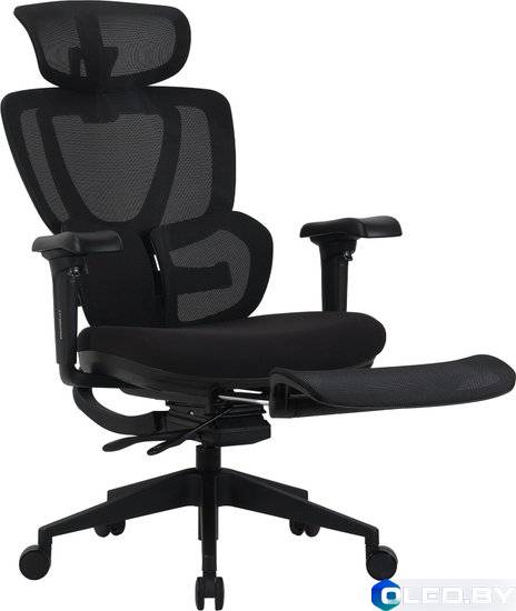 Ценителям эргономики: Кресло оснащено 3D-подлокотниками, регулируемым подголовником и, что важно, выдвижной подставкой для ног для отдыха.