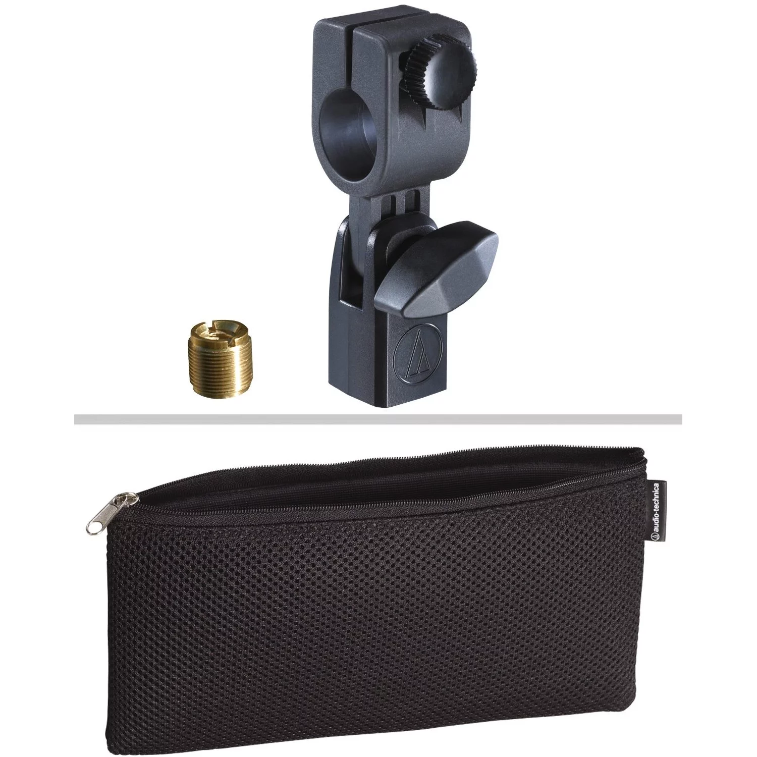 В комплект входят аксессуары. Зажим AT8471 для стоек с резьбой 5/8"-27; переходник с резьбы 5/8"-27 на 3/8"-16; мягкий защитный чехол.
