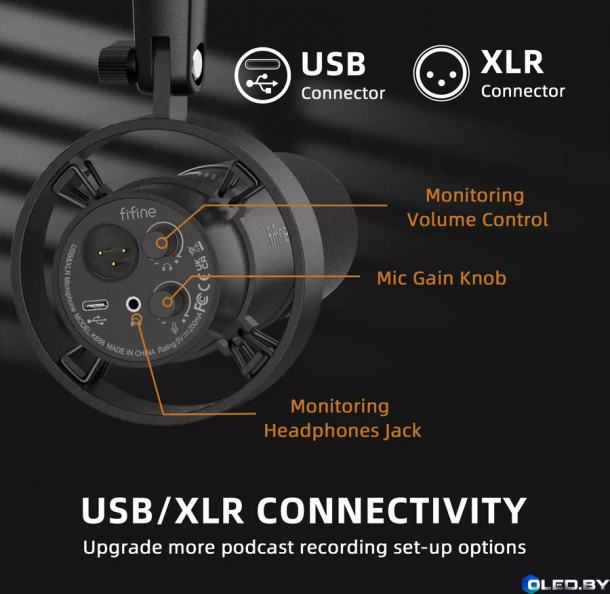 Двойное подключение: Работает через USB (Plug-and-Play) для простого подключения к ПК, а также имеет XLR-разъем для подключения к аудиоинтерфейсам (для работы по XLR необходимо фантомное питание).