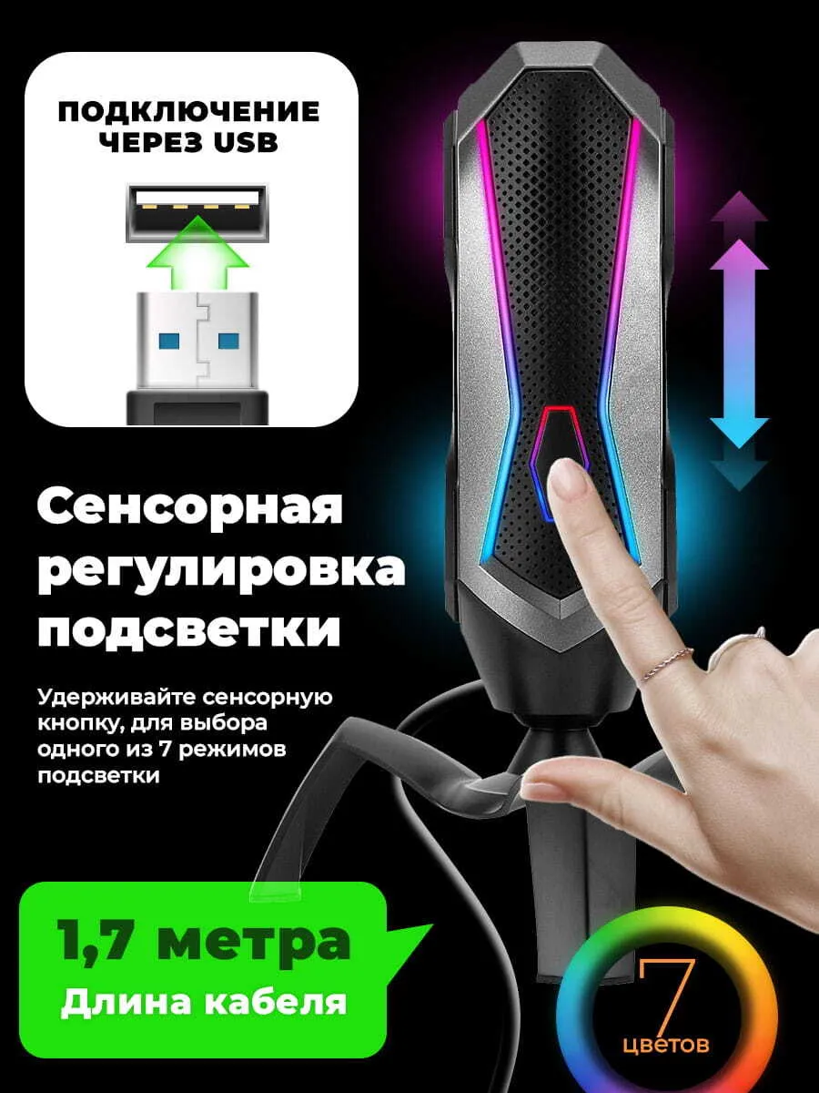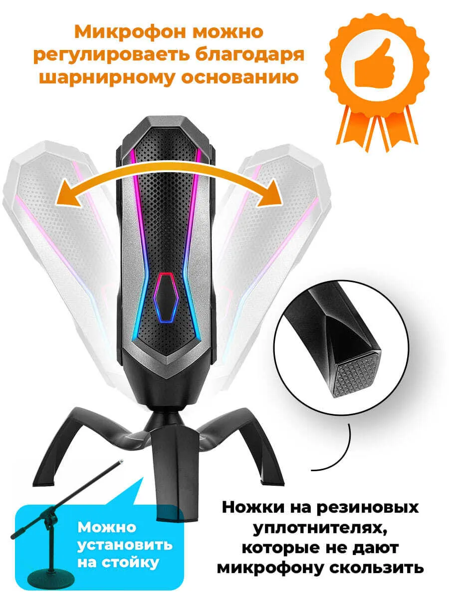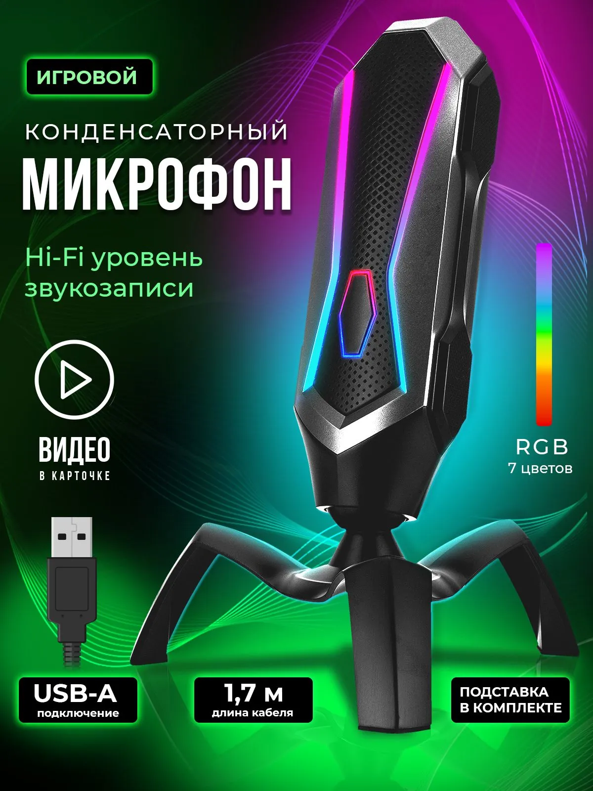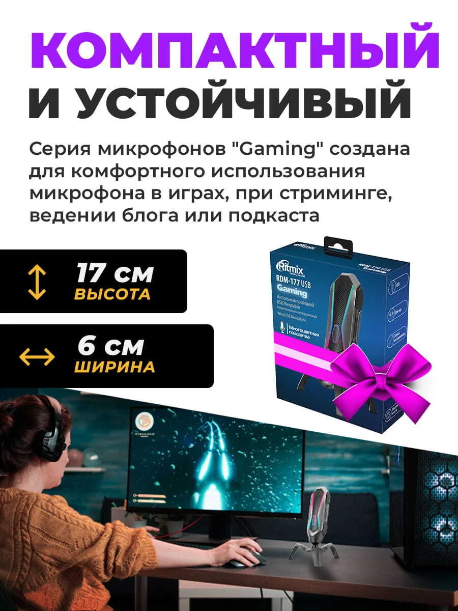 Ritmix RDM-177 USB Gaming — это настольный конденсаторный микрофон с кардиоидной диаграммой направленности, ориентированный на геймеров и стримеров.