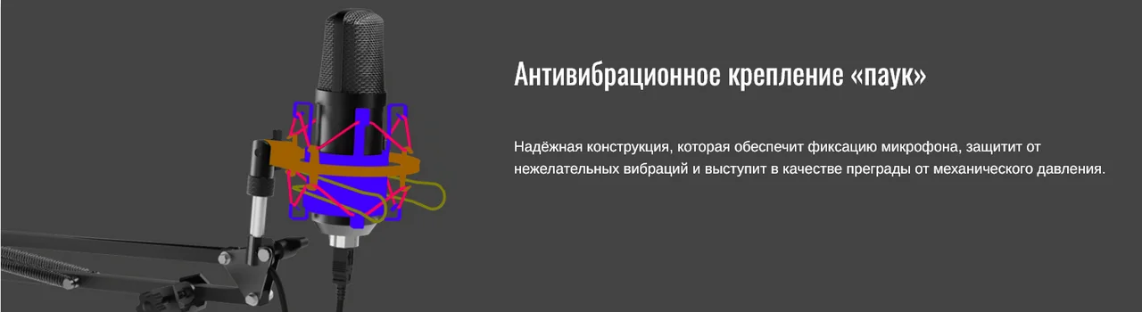 Надёжная конструкция, которая обеспечит фиксацию микрофона, защитит от нежелательных вибраций и выступит в качестве преграды от механического давления.