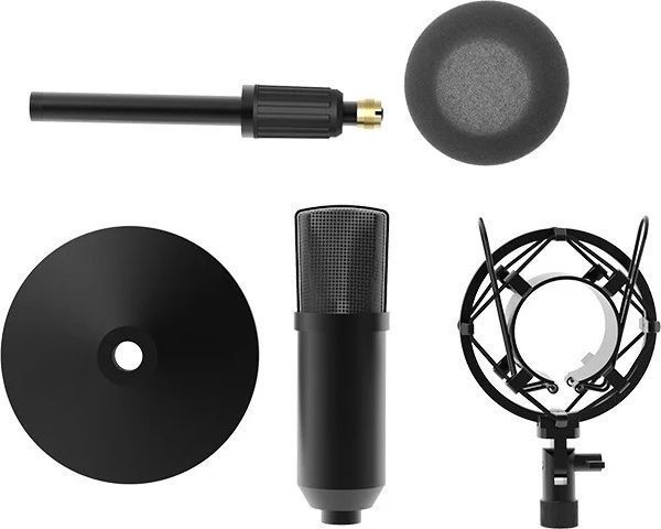 Студийная комплектация: В комплект поставки входят поп-фильтр на гибкой «гусиной шее», ветрозащита («поролонка») и антивибрационный держатель типа «паук» для защиты от вибраций стола.