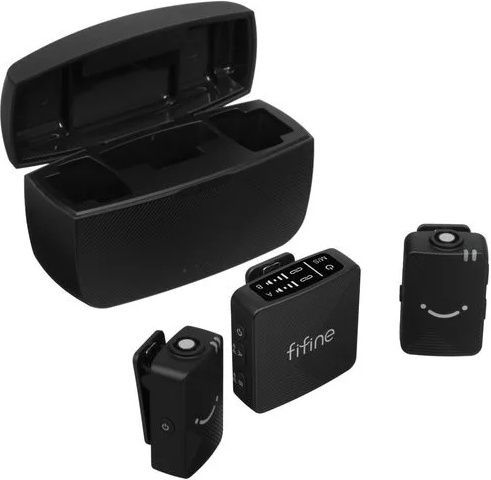 FIFINE M9 — это современная двуканальная беспроводная петличная радиосистема, предназначенная для создания высококачественного аудиоконтента в различных условиях. Комплект предоставляет полную свободу передвижения благодаря дальности стабильной работы до 50 метров и включает всё необходимое для записи: два микрофона, компактный ресивер и удобный зарядный кейс.