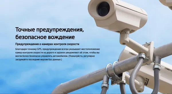 Благодаря точному GPS, предупреждения всегда указывают местоположение камер контроля скорости на дороге и заранее уведомляют об этом, чтобы вы могли более безопасно управлять автомобилем. (Пожалуйста, регулярно загружайте последние версии баз данных )