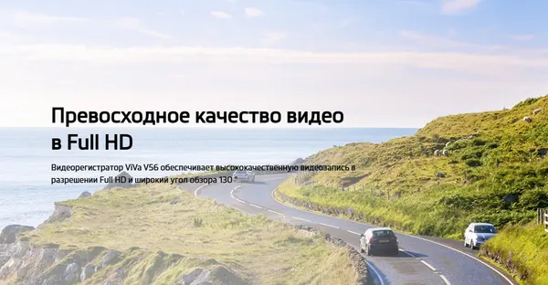 Видеорегистратор ViVa V56 обеспечивает высококачественную видеозапись в разрешении Full HD и широкий угол обзора 130 °
