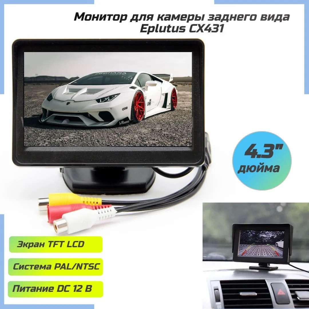 Eplutus CX431 — это компактный автомобильный TFT LCD монитор с диагональю 4,3 дюйма, предназначенный для облегчения парковки и визуального контроля пространства позади автомобиля.
