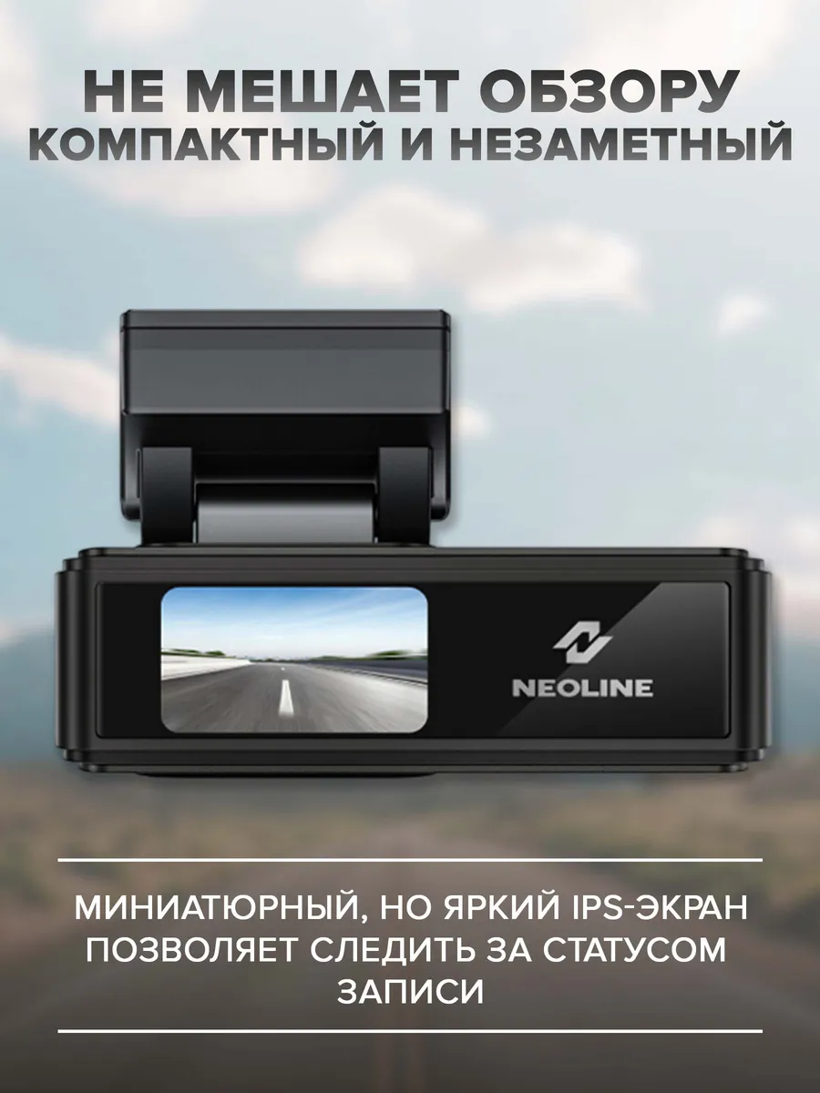Neoline FLASH 2K незаметен для окружающих и не привлекает внимание благодаря компактному корпусу. Видеорегистратор легко скрывается за зеркалом заднего вида и не мешает обзору водителя. В то же время миниатюрный, но яркий IPS-экран позволяет следить за статусом записи.