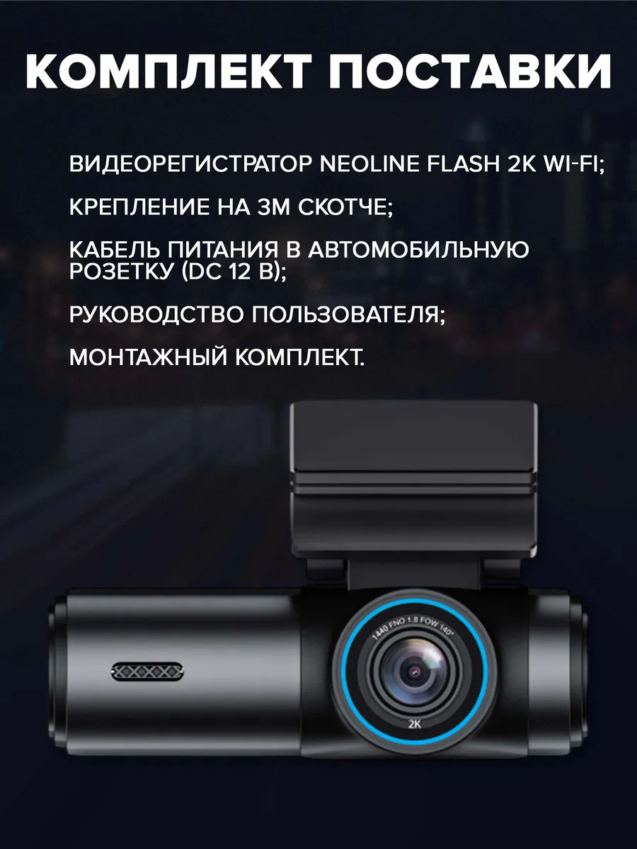Широкий угол обзора объектива в 170° позволяет захватывать в кадре больше дорожной обстановки и не упускать важные детали. Neoline FLASH 2K фиксирует до четырех полос движения и обочину.