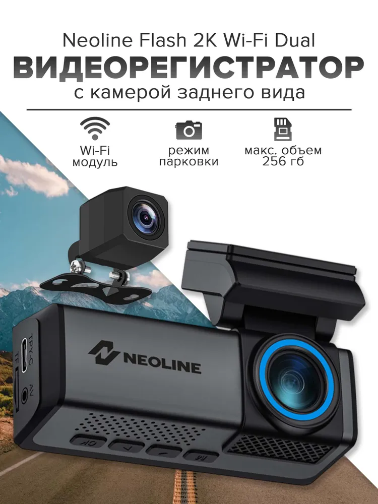 Видеорегистратор Neoline Flash 2K Wi-Fi Dual с двумя камерами