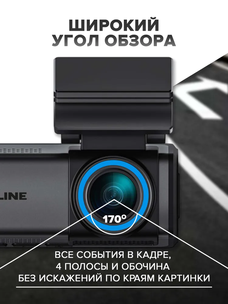 Фронтальная камера снимает на видео обстановку перед автомобилем, а тыльная записывает события позади него. Каждая камера Neoline FLASH 2K Dual фиксирует до четырех полос движения и обочину. Суммарный угол обзора передней и задней камеры составляет 290° (170°+120°), что обеспечивает практически полное отсутствие «слепых зон».