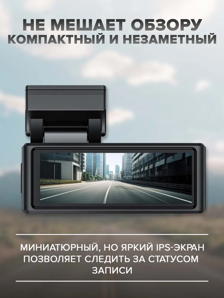 Видеорегистратор Neoline FLASH 2K Dual с задней камерой незаметен для окружающих и не привлекает внимание благодаря компактному дизайну. Фронтальная камера легко скрывается за зеркалом заднего вида и не мешает обзору водителя. В то же время миниатюрный, но яркий IPS-экран позволяет следить за статусом записи. Крохотная задняя камера едва видна над госномером автомобиля.