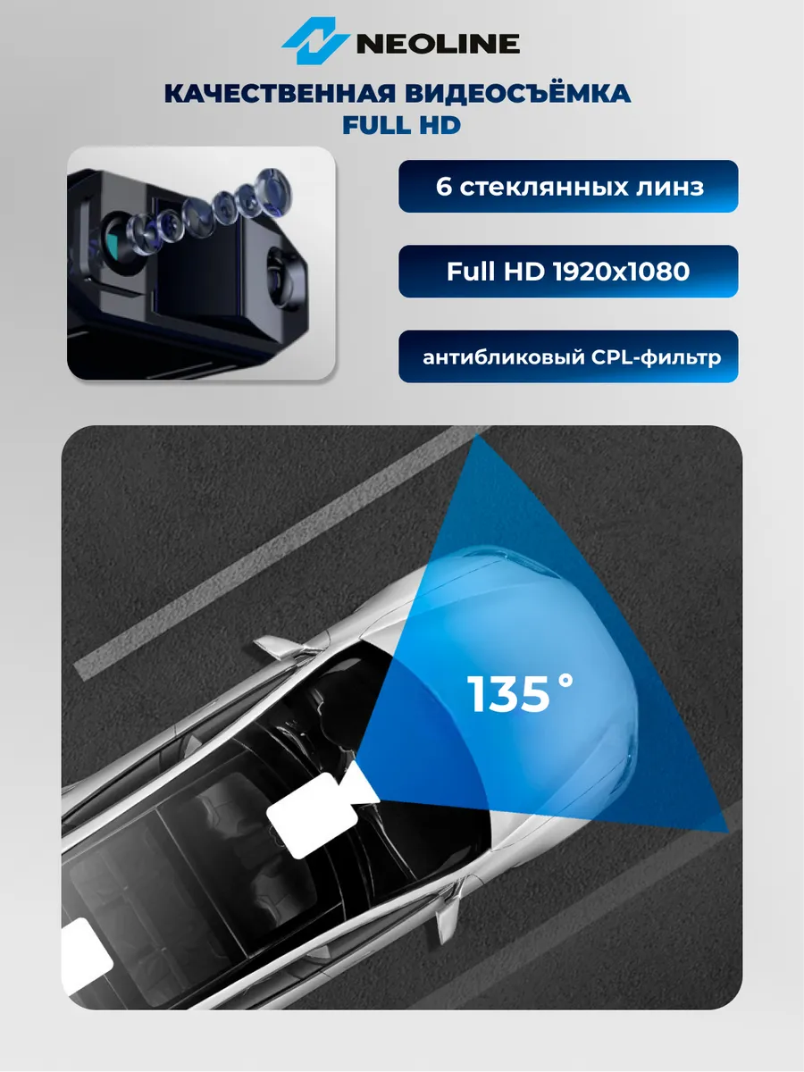 Neoline X-COP CITYSMART предлагает оптимальный угол обзора 135 градусов, идеальный баланс для широкого охвата дорожной обстановки. В кадр попадает все происходящее перед автомобилем без оптических искажений по краям изображения.