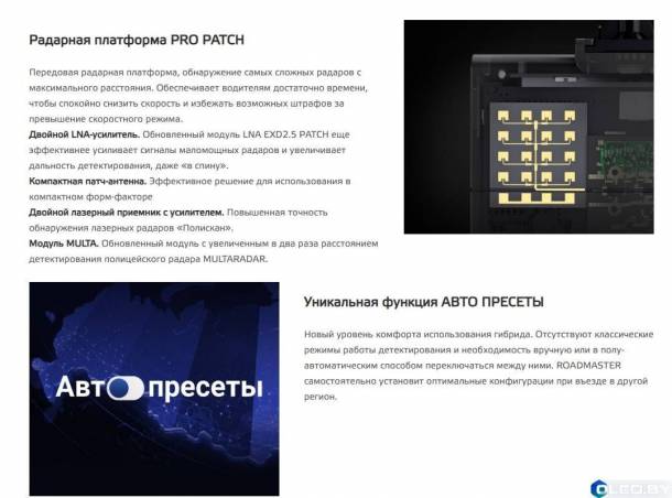 Новый уровень комфорта использования гибрида. Отсутствуют классические режимы работы детектирования и необходимость вручную или полуавтоматическим способом переключаться между ними. ROADMASTER самостоятельно установит оптимальные конфигурации при въезде в другой регион.