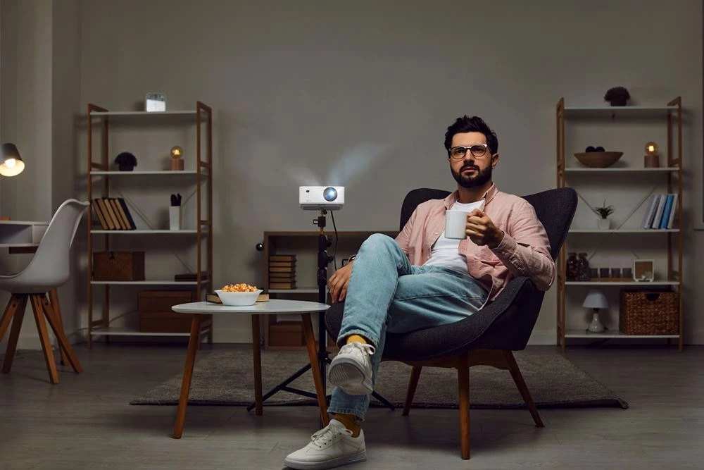 Благодаря короткофокусному объективу вы можете запроектировать впечатляющее изображение размером 100" на расстоянии всего в метр от проектора. Это позволяет размещать проектор ближе к стене, нивелируя при этом тень.