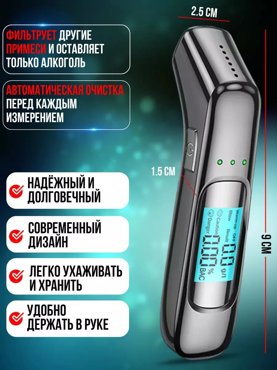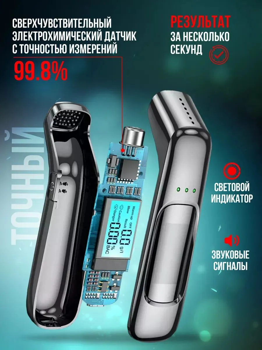 Нормальный прибор без дешёвых полупроводниковых сенсоров!!! Электрохимический датчик КОСМОС! Точность реально выше, чем у китайского мусора за 20 рублей. Дунул через полчаса после 2 бокалов вина показал 0.35 промили, через час перепроверил 0.28, всё стабильно и без скачков!) Прогрев 10 секунд, результат за 5 секунд, в карман влезает, пластик приятный на ощупь. И главное погрешность около 1% это вам не игрушка! ДА, надо полоскать рот и ждать 15 минут, но это же логично не дуть же сразу после глотка водки. ЛУЧШАЯ ПОКУПКА ДЛЯ ВОДИТЕЛЯ! Рекомендую на все 5!)
