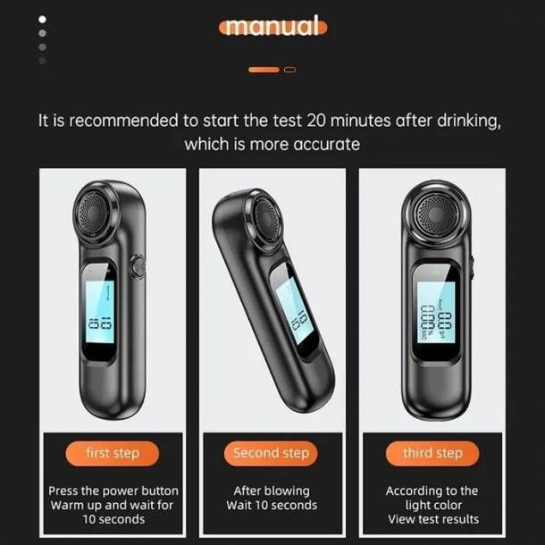 Перед использованием прополощите рот чистой водой. Воздержитесь от курения или питья напитков не менее чем за 15 минут до проведения теста. Если вы выполняете тест сразу после выпитого напитка, показания будет колебаться от высоких значений до низких. Это связано с остатками ароматического напитка во рту, которые влияют на результаты теста. Это так же произойдет с остатками табака, алкогольными ополаскивателями для рта или спреями для ротовой полости, лекарствами или наркотиками, а так же с отрыжкой и рвотой. Когда алкоголь попадает в кровь через желудочно-кишечный тракт (рот, желудок кишечник), он распространяется по всем частям тела, включая легкие. Этот период будет длиться от 15-30 минут до стабилизации показаний. Наше устройство анализирует выдыхаемый воздух человеком и дает цифровые данные приблизительной концентрации алкоголя в крови человека (известной как ВАС). Если пользователь направит в датчик очень высокую концентрацию этанола, данные будут неточными, необходимо ждать 10 минут для испарения из датчика.
