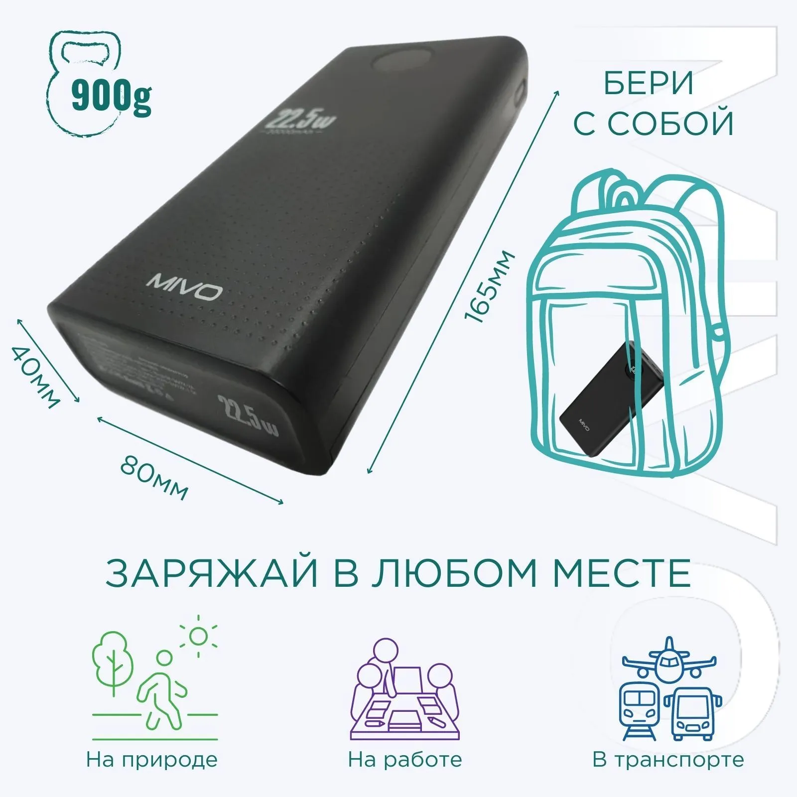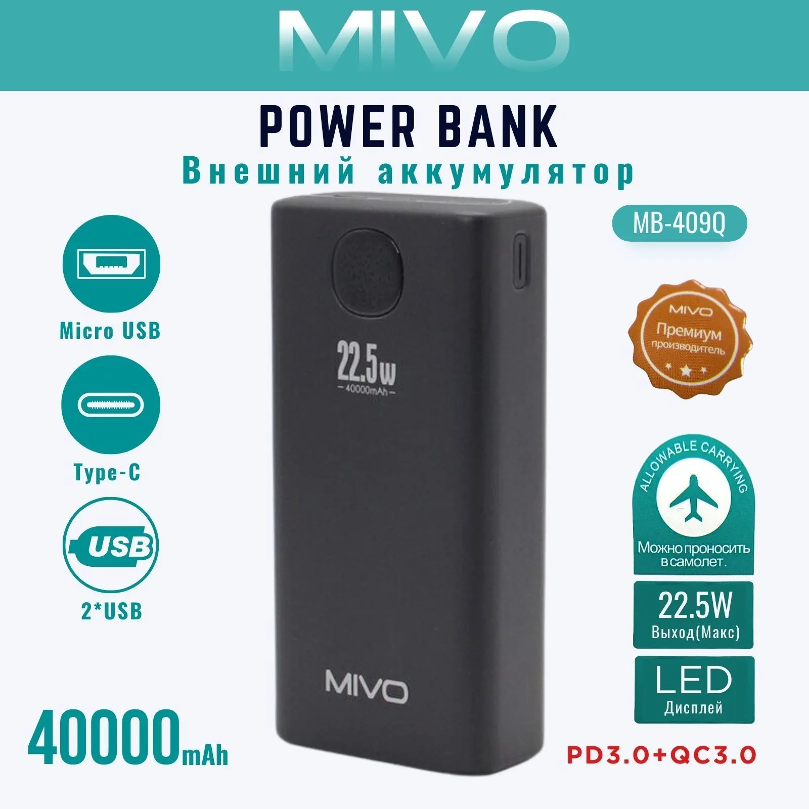 Характеристики на внешний аккумулятор mivo mb-409q 40000mah