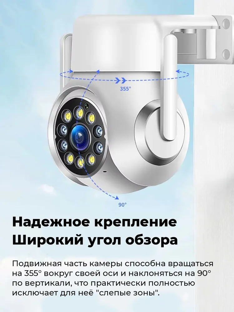 поворотная "голова" с углом вращения до 355о по горизонтали и 90о по вертикали – как из приложения на нужный Вам угол, так и автоматически в режиме отслеживания объекта;