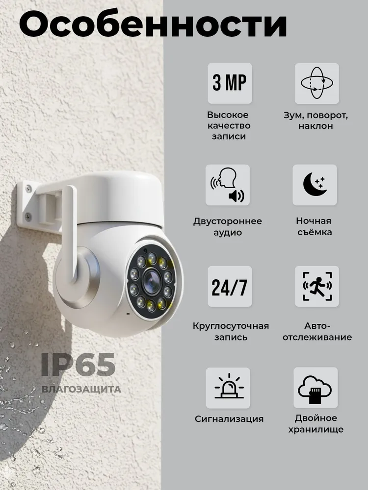 Wi-Fi камера IPC-350S-Tuya - мощное устройство с внушительным оснащением, и его внешний вид позволяет убедиться в этом с первого взгляда.
